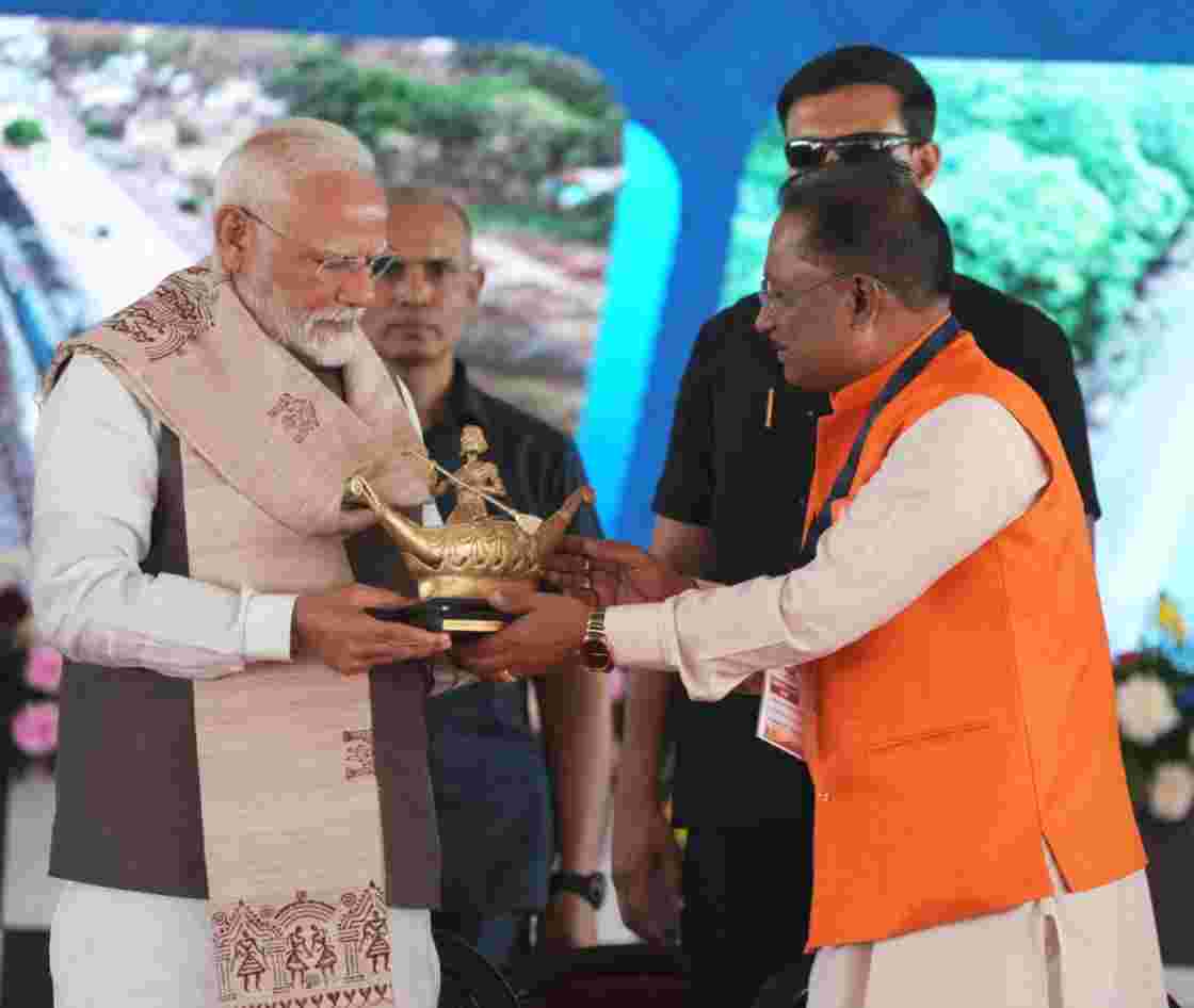 रायपुर। मुख्यमंत्री विष्णुदेव साय ने बिलासपुर जिले के ग्राम मोहभट्टा में आयोजित आमसभा एवं विकास कार्यों के लोकार्पण शिलान्यास समारोह में प्रधानमंत्री श्री नरेंद्र मोदी को आज एक विशेष मोमेंटो भेंट किया, जो छत्तीसगढ़ की वीरांगना बिलासा देवी केवट की स्मृति में तैयार किया गया है। यह मोमेंटो न केवल छत्तीसगढ़ की सांस्कृतिक विरासत का प्रतीक है, बल्कि नारी शक्ति, आत्मनिर्भरता और नेतृत्व क्षमता की जीवंत अभिव्यक्ति भी है।