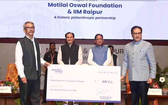 मोतीलाल ओसवाल फाउंडेशन ने आईआईएम रायपुर एवं एनआईटी रायपुर को कुल 172 करोड़ रुपये का दान देने की घोषणा की है। इसमें से 101 करोड़ रुपये आईआईएम रायपुर को तथा 71 करोड़ रुपये एनआईटी रायपुर को प्रदान किए जाएंगे।