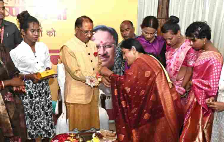 रायपुर। मुख्यमंत्री विष्णु देव साय को आज रक्षाबंधन पर्व पर मुख्यमंत्री निवास पहुंचकर बड़ी संख्या में बहनों और बच्चियों ने राखी बांधी। इस मौके पर ट्रांसजेंडरों ने भी मुख्यमंत्री निवास पहुंचकर मुख्यमंत्री श्री विष्णु देव साय को राखी बांधी और उनके सुखद-समृद्ध जीवन के लिए दुआएं दी। भारत में पहली बार है कि ट्रांसजेंडर मुख्यमंत्री निवास पहुंचकर मुख्यमंत्री को राखी बांधकर इस रक्षाबंधन पर्व को खास ढंग से मनाया।