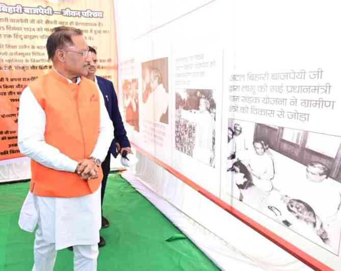 मुख्यमंत्री श्री साय ने अटल जी के नेतृत्व, दूरदृष्टि और जनसेवा के प्रति उनकी प्रतिबद्धता और देश के निर्माण में उनके अतुलनीय योगदान को याद किया। श्री साय ने इस मौके पर श्रद्धेय श्री अटल जी के व्यक्तित्व और कृतित्व पर आधारित छायाचित्र प्रदर्शनी का अवलोकन किया। इस अवसर पर सरगुजा क्षेत्र आदिवासी विकास प्राधिकरण की उपाध्यक्ष एवं विधायक पत्थलगांव श्रीमती गोमती साय सहित अनेक जनप्रतिनिधि और गणमान्य नागरिक उपस्थित थे।