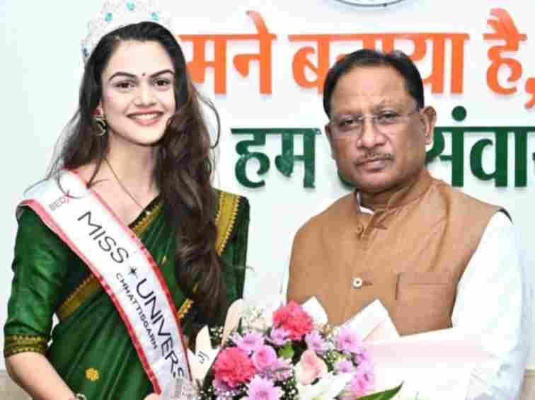 रायपुर। मुख्यमंत्री विष्णु देव साय से रायपुर स्थित मुख्यमंत्री निवास कार्यालय में मिस यूनिवर्स छत्तीसगढ़ 2025 डॉ. अंजली पवार ने सौजन्य भेंट की। मुख्यमंत्री श्री साय ने डॉ. अंजली पवार को इस उपलब्धि के लिए हार्दिक शुभकामनाएं दीं। भेंट के दौरान मुख्यमंत्री श्री साय ने डॉ. अंजली पवार को छत्तीसगढ़ के पर्यटन को बढ़ावा देने के लिए प्रेरित किया।