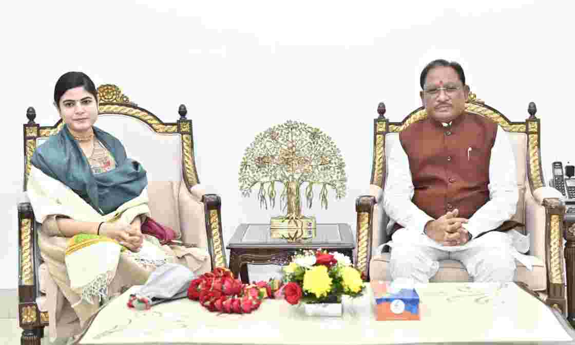 मुख्यमंत्री विष्णु देव साय से प्रसिद्ध कथावाचक देवी चित्रलेखा की सौजन्य भेंट