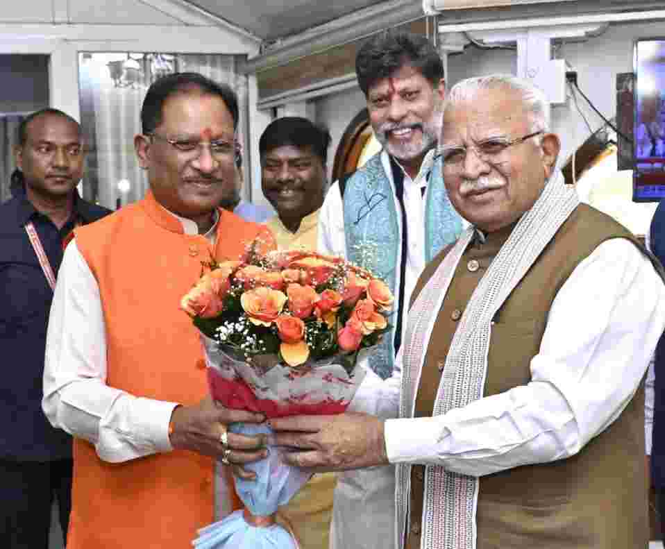 रायपुर। मुख्यमंत्री विष्णु देव साय से आज मुख्यमंत्री निवास में केन्द्रीय आवास और शहरी विकास मंत्री श्री मनोहर लाल खट्टर ने सौजन्य मुलाकात की। मुख्यमंत्री ने श्री खट्टर का शॉल एवं प्रतीक चिन्ह नंदी भेंटकर अभिनंदन किया। इस अवसर पर विधानसभा अध्यक्ष डॉ. रमन सिंह, वन मंत्री श्री केदार कश्यप, विधायक श्री किरण सिंह देव उपस्थित थे।