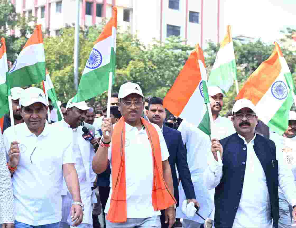 रायपुर। मुख्यमंत्री विष्णुदेव साय आज प्रातः संविधान दिवस पदयात्रा कार्यक्रम में शामिल हुए। संविधान दिवस पदयात्रा पंडित जवाहर लाल नेहरू स्मृति चिकित्सा महाविद्यालय सभागृह से प्रारंभ होकर अंबेडकर चौक पर समाप्त हुई। मुख्यमंत्री ने डॉ. भीमराव अंबेडकर की प्रतिमा पर माल्यार्पण कर उन्हें नमन किया। इस पदयात्रा में उप मुख्यमंत्री श्री अरूण साव, खेल एवं युवा कल्याण मंत्री श्री टंकराम वर्मा, वन मंत्री श्री केदार कश्यप, खाद्य मंत्री श्री दयालदास बघेल, पूर्व विधानसभा अध्यक्ष श्री धरमलाल कौशिक, विधायकगण श्री इंद्र कुमार साहू, गुरु खुशवंत साहेब, श्री अनुज शर्मा, महिला आयोग की सदस्य श्रीमती लक्ष्मी वर्मा और युवा आयोग के अध्यक्ष श्री विश्वजीत तोमर शामिल थे।