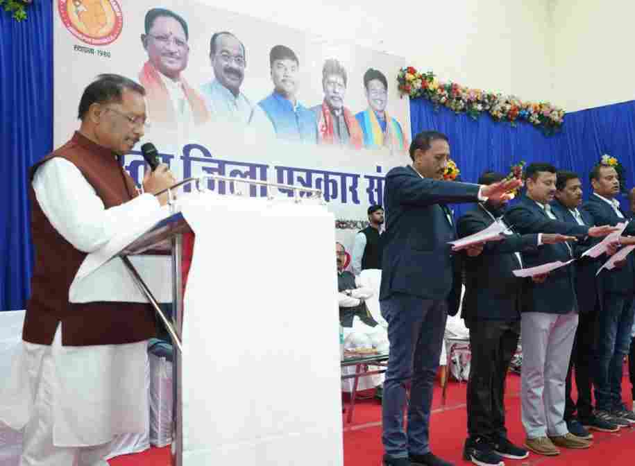 कार्यक्रम में मुख्यमंत्री श्री साय ने बस्तर जिला पत्रकार संघ के नव निर्वाचित पदाधिकारियों को शपथ दिलाई और पदाधिकारियों को नये दायित्व के निर्वहन के साथ ही नववर्ष के लिए बधाई और शुभकामनाएं दी। कार्यक्रम में बस्तर जिला पत्रकार संघ के अध्यक्ष श्री मनीष गुप्ता ने स्वागत उद्बोधन दिया। इस अवसर पर खेल मंत्री श्री टंकराम वर्मा सहित बड़ी संख्या में पत्रकारगण उपस्थित थे।