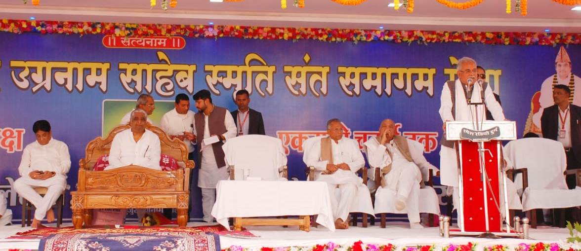 मुख्यमंत्री श्री भूपेश बघेल आज बेमेतरा जिले के ग्राम लोलेसरा में पंथ श्री हुजुर उग्रनाम साहेब स्मृति में कबीरपंथ के संत समागम मेला में शामिल हुए। मुख्यमंत्री ने साहेब बंदगी की जयघोष के साथ कबीरपंथ के गुरू श्री प्रकाश मुनि नाम साहब से आर्शीवाद प्राप्त किया और भव्य आयोजन के लिए पूरे आयोजन समिति और कबीरपंथ के अनुयायियों को बधाई एवं शुभकामनाएं दी। उन्होंने कहा कि साहेब बंदगी मानव से मानवता तक और एक दूसरे को सह-सम्मान करने तथा अभिवादन करने की पवित्र संस्कृति है। इस संस्कृति की महत्ता एवं ख्याति दिनों दिन बढ़ती जा रही है।