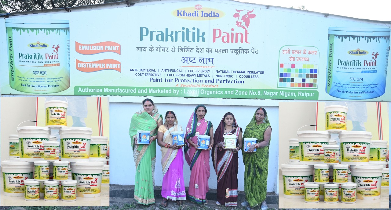 राजधानी रायपुर के जरवाय गौठान, दुर्ग जिले के गांव लिटिया और कांकेर के सराधुननवागांव में गोबर से प्राकृतिक पेंट बनाने का का शुरू किया गया है। पेंट निर्माण में अमूमन मल्टी नेशनल कंपनियां ही काबिज थीं लेकिन अब ग्रामीण महिलाएं भी इस क्षेत्र में मजबूती से कदम रख चुकी हैं। गोबर से बनने वाला प्राकृतिक पेंट बिल्कुल मल्टी नेशनल कंपनियों के द्वारा तैयार किए गए पेंट जैसा है। इसकी गुणवत्ता उच्च स्तरीय है, यह पेंट एंटी बैक्टीरिया और एंटीफंगल होता है।