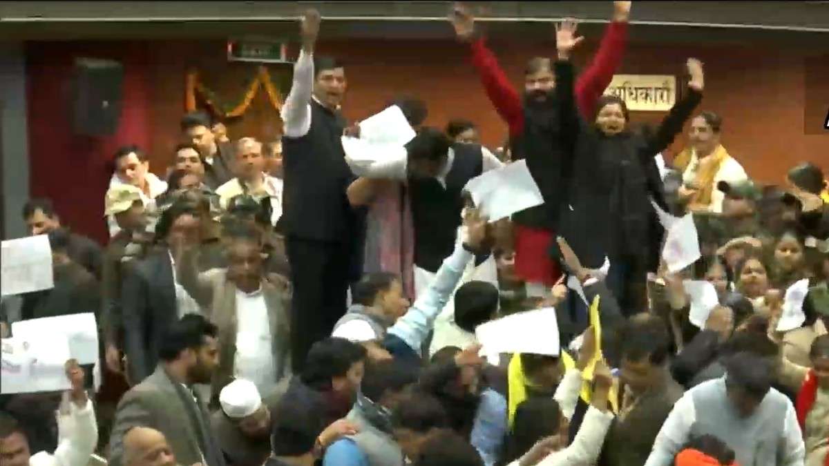 आज दिल्ली में मेयर चुनाव के दौरान जमकर हंगामा हुआ। सदन में पीठासीन अधिकारी ने जैसे ही मनोनीत सदस्यों को शपथ ग्रहण कराना शुरू किया, हंगामा हो गया। आम आदमी पार्टी के पार्षदों ने इसका विरोध करना शुरू कर दिया। विवाद इतना बढ़ गया कि पार्षदों के बीच हाथापाई शुरू हो गई। कई पार्षद एक-दूसरे पर कुर्सियां फेंकते नजर आए। भाजपा ने आम आदमी पार्टी के पार्षदों पर मारपीट का आरोप लगाया है। दावा है कि कई पार्षदों को चोट भी लगी है। बढ़ते हंगामे को देखते हुए पीठासीन अधिकारी ने चुनाव टाल दिया।