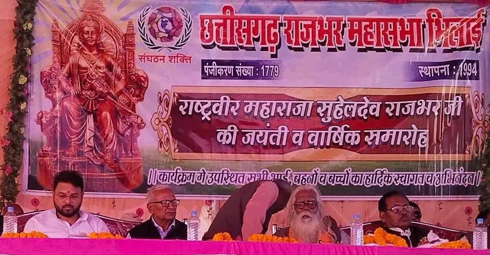 भिलाई। छत्तीसगढ़ राजभर महासभा के सम्मलेन में पिछले दिनों 5- फरवरी को सेक्टर – 2 इस्पात क्लब भिलाई में संपन्न हुआ, महाराजा सुहेल देव कि 1014 जयंती समाज के द्वारा बड़े हर्ष व उल्लास के साथ भव्य आयोजन कर मनाई गई इस अवसर में छत्तीसगढ़ राजभर महासभा के अध्यक्ष नरसिंह राजभर के अनुरोध मुख्य अतिथि के रूप में उपस्थित महापौर नीरज पाल ने महाराजा सुहेल देव राजभर जी कि प्रतिमा स्थापना की घोषणा करता हूँ कहा कि उपयुक्त स्थल देखकर इस काम को जल्द किया जायेगा, साथ ही समाज के भवन के लिए भूखंड का प्रस्ताव एमआईसी से पास करेंगे राज्य शासन को भेजा जायेगा।