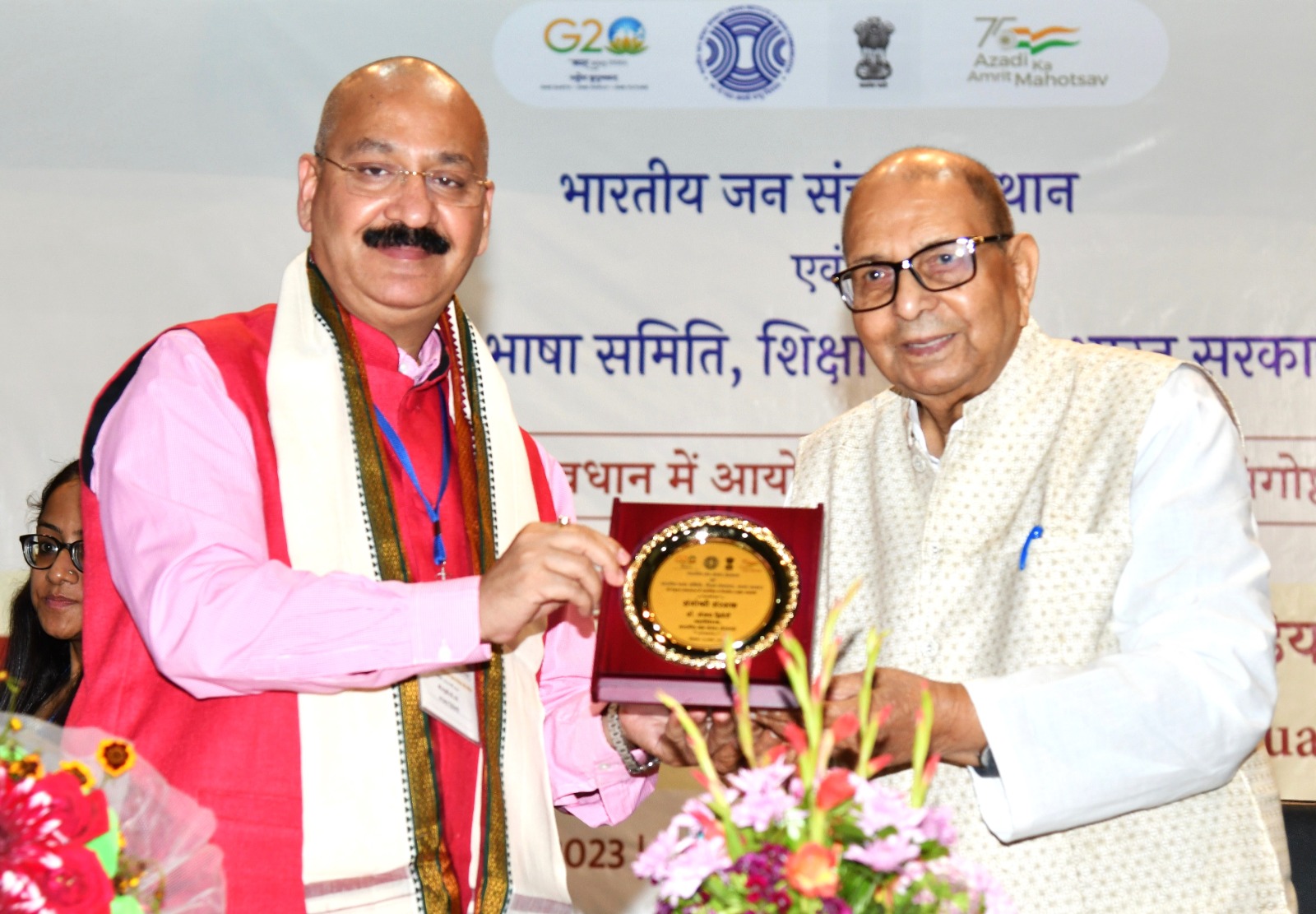 *नई दिल्ली, *भारतीय जन संचार संस्थान* और *भारतीय भाषा समिति* के संयुक्त तत्वावधान में आयोजित दो दिवसीय राष्ट्रीय संगोष्ठी के समापन सत्र को संबोधित करते हुए *वरिष्ठ पत्रकार एवं माखनलाल चतुर्वेदी राष्ट्रीय पत्रकारिता एवं संचार विश्वविद्यालय, भोपाल के पूर्व कुलपति अच्युतानंद मिश्र* ने कहा कि भाषा का सम्मान, मां का सम्मान है। जब हम अपनी भाषा का सम्मान करेंगे, तभी हम अपने संस्कारों और संस्कृति का भी सम्मान कर पाएंगे। उन्होंने कहा कि भारतीय भाषाओं के विस्तार के साथ भाषाई पत्रकारिता का विकास करना है, तो आपको अपनी भाषा या बोली पर गर्व करना होगा और उसका ज्यादा से ज्यादा प्रयोग करना होगा। इस अवसर पर भारतीय जन संचार संस्थान के महानिदेशक *प्रो. (डॉ.) संजय द्विवेदी*, वरिष्ठ पत्रकार *विशंभर नेवर*, भारतीय भाषा समिति के सहायक कुलसचिव *जेपी सिंह*, डीन (छात्र कल्याण) एवं संगोष्ठी के संयोजक *प्रो. प्रमोद कुमार* सहित आईआईएमसी के सभी प्राध्यापक, अधिकारी एवं विद्यार्थी उपस्थित रहे।