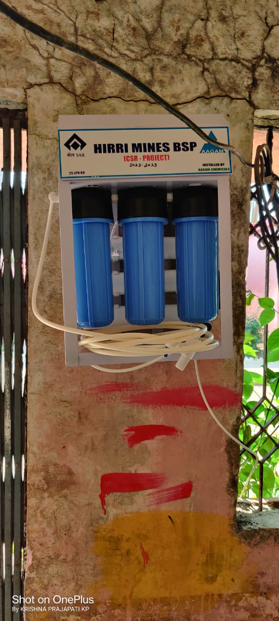 सेल-भिलाई इस्पात संयंत्र के हिर्री माइन्स द्वारा निगमित सामाजिक उत्तरदायित्व गतिविधियों के तहत आसपास के ग्रामीण क्षेत्रों के 13 स्कूलों में 25 लीटर क्षमता के आरओ वाटर मशीन लगाया जा रहा है। इसके माध्यम से छात्रों को शुद्धपेयजल उपलब्ध हो सकेगा।