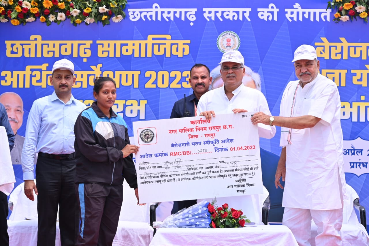 मुख्यमंत्री श्री भूपेश बघेल ने बेरोजगारी भत्ता योजना का शुभारंभ किया ,चार युवाओं को मुख्यमंत्री ने बेरोजगारी भत्ता स्वीकृति आदेश सौंपा ,प्रदेश के बेरोजगारों को ₹2500 प्रतिमाह बेरोजगारी भत्ता मिलेगा,18 से 35 वर्ष उम्र के बेरोजगार युवा बेरोजगारी भत्ते के लिए पात्र होंगे .