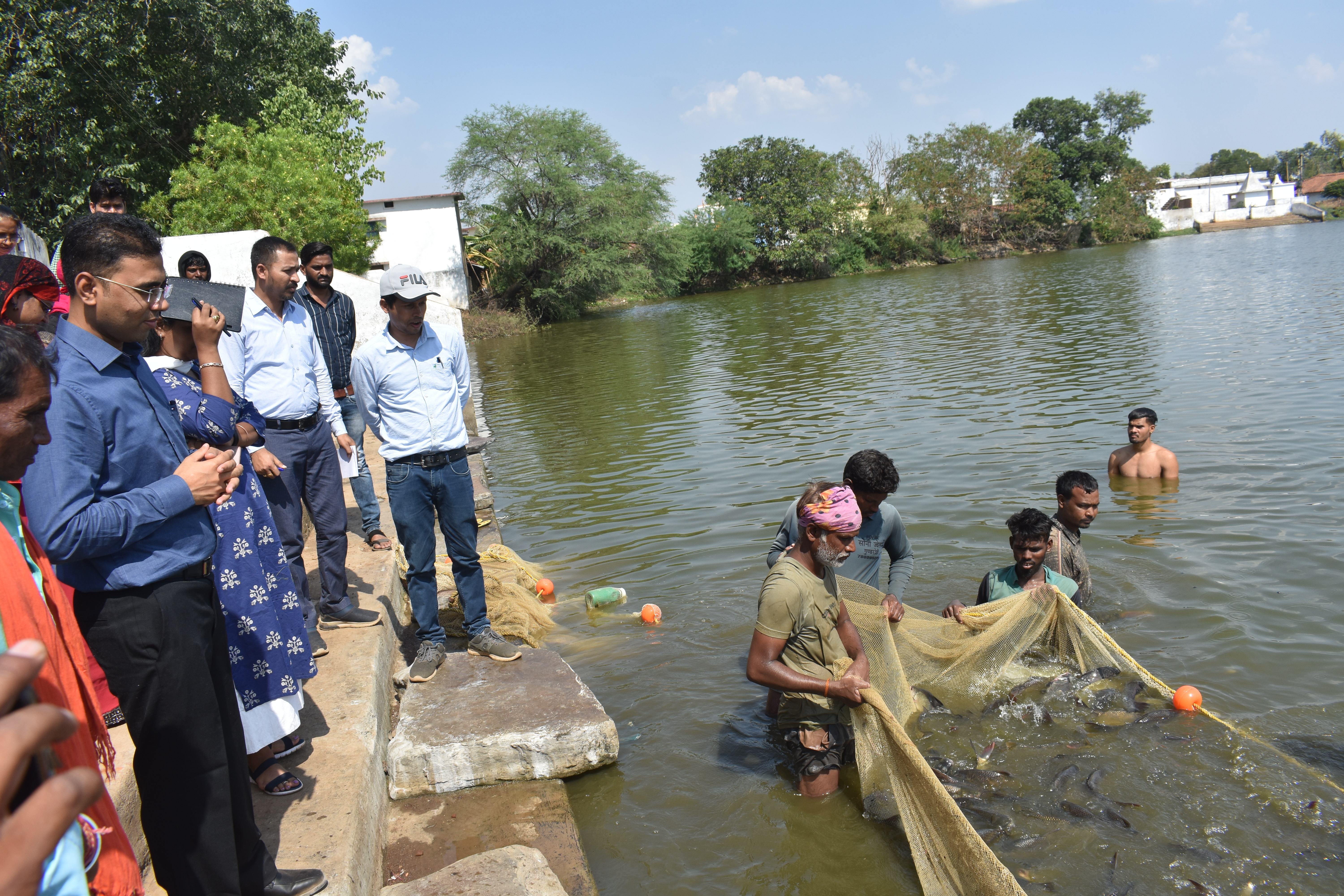 कलेक्टर श्री कुलदीप शर्मा अपने दौरा कार्यक्रम के दौरान बुधवार 17 मई को मत्स्य विभाग के योजना से लाभान्वित हितग्राहियों से चर्चा करने गुण्डरदेही विकासखण्ड के ग्राम कांदुल पहुंचे। इस दौरान श्री शर्मा ने ग्राम कांदुल में संचालित जय श्री राम मछुवारा समिति के अध्यक्ष श्री प्रहलाद सिंह निषाद से मछली पालन व्यवसाय से होने वाली आमदानी एवं इसके कुल लागत के संबंध में जानकारी ली। मछुवा समिति के अध्यक्ष श्री प्रहलाद सिंह निषाद ने बताया कि उन्होंने ग्राम पंचायत के 02 हेक्टेयर तालाब में शासन की योजना का लाभ लेकर 50 प्रतिशत अनुदान में मछली बीज प्राप्त किया है। उन्होंने तालाब में 08 माह पहले विभिन्न प्रजातियों का मछली बीज डाला है। मछली बेचकर उन्होंने अब तक कुल 01 लाख 10 हजार रुपये का लाभ प्राप्त किया है। उन्होंने बताया कि अब तक वे कुल 900 किलोग्राम मछली की बिक्री कर चुकें है। श्री निषाद ने बताया कि उनके समिति में कुल 23 सदस्य है। साथ ही समिति का सामूहिक बैंक खाता है जिसमें पैसा जमा करने के साथ-साथ जरूरत के हिसाब से पैसा निकाला जाता है। राज्य शासन की जन कल्याणकारी योजना का लाभ लेकर उन्हें एवं उनके समिति के सदस्यों को मछली पालन व्यवसाय से अच्छी खासी आमदानी हो रही है। जिसके फलस्वरूप अपने परिवार का समूचित रूप से भरण-पोषण एवं बच्चों की शिक्षा करा पा रहे हैं। इस अवसर पर जिला पंचायत के मुख्य कार्यपालन अधिकारी डाॅ. रेणुका श्रीवास्तव, एसडीएम श्रीमती रश्मि वर्मा, मुख्य चिकित्सा एवं स्वास्थ्य अधिकारी श्री जे.एल. उइके सहित संबंधित अधिकारी-कर्मचारी उपस्थित थे।