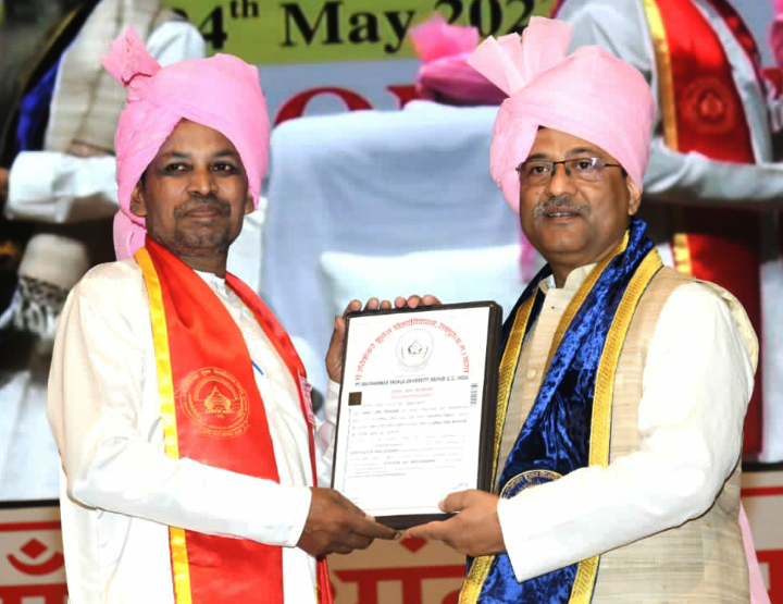 सेल-भिलाई इस्पात संयंत्र के टाउनशिप के जनस्वास्थ्य विभाग में जूनियर हेल्थ इंस्पेक्टर में कार्यरत श्री अंकुश देवांगन को डॉक्टर ऑफ फिलॉसफी की उपाधि से सम्मानित किया गया। पंडित रविशंकर शुक्ल विश्वविद्यालय, रायपुर के 26 वें दीक्षांत समारोह में कुलपति श्री सच्चिदानंद शुक्ल ने उन्हें यह सम्मान प्रदान किया। इस दौरान विशेष रूप से माननीय राज्यपाल श्री विश्वभूषण हरीचंदन, मुख्यमंत्री श्री भूपेश बघेल तथा इसरो से आए पद्मश्री वैज्ञानिक श्री राजन जी उपस्थित थे।