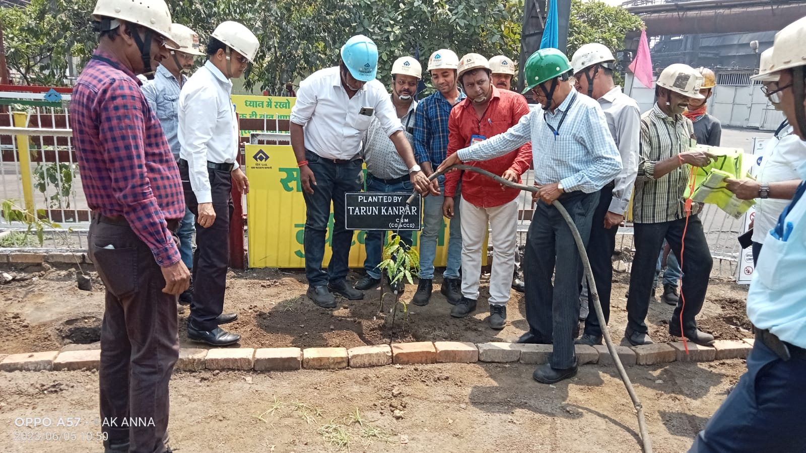 सेल-भिलाई इस्पात संयंत्र के कोक ओवन एवं कोल केमिकल विभाग द्वारा 5 जून, विश्व पर्यावरण दिवस के अवसर पर पर्यावरण एवं जलवायु संवर्धन की दिशा में कदम बढ़ाते हुए विशेष समारोह आयोजित किया गया। मुख्य महाप्रबंधक (कोकओवन) श्री तरूण कनरार के मुख्य आतिथ्य में आयोजित वृक्षारोपण समारोह में उपस्थित वरिष्ठ अधिकारियों के द्वारा कोक ओवन कैंटीन व वर्क्स विल्डिंग के मध्य रिक्त भूमि पर अशोक वृक्ष व बोगनवेलिया के पौधे रोपित किए गए।