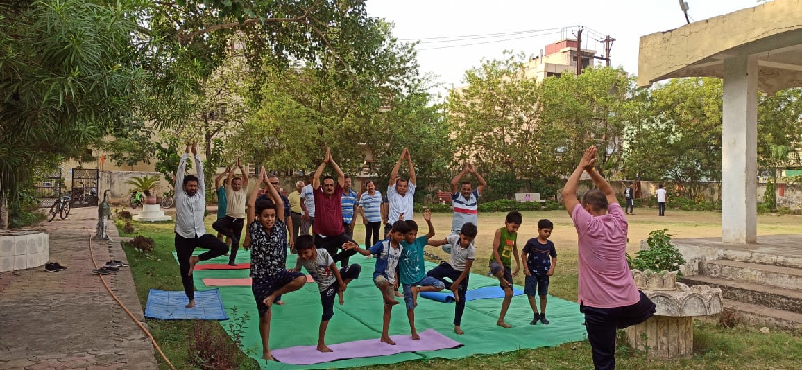 अंतर्राष्ट्रीय योग दिवस के अवसर पर राधास्वामी नगर में सामूहिक योग का आयोजन किया गया। इस अवसर पर कालोनी वासी ,योग प्रशिक्षक अजय मिश्रा, अजीत श्रीवास्तव,उमेश मिश्रा,जी एस मंडावी,वी एन दीवान, पी एन तिवारी,सुशील तिवारी, टोमन साहू गोपाल खरवडे , सुरेन्द्र त्रिपाठी एवं संघ सदस्यों ने विभिन्न योगाभ्यास किया।