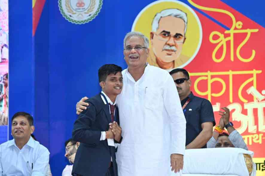 मुख्यमंत्री धमतरी के युवा सोमेश्वर का जोशीला भाषण सुनकर हुए गदगद, गले लगाकर दिया आशीर्वाद और बजवायीं तालियाँ