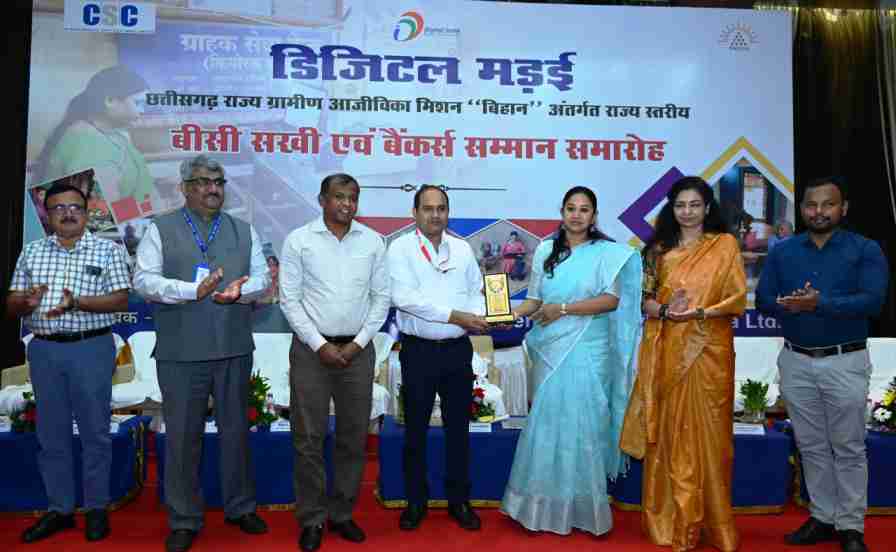 रायपुर। छत्तीसगढ़ राज्य ग्रामीण आजीविका मिशन (बिहान) के अंतर्गत डिजिटल फाइनेंस के क्षेत्र में उत्कृष्ट कार्य करने वाली और दूरस्थ क्षेत्रों में बैंकिंग सेवाएं प्रदान करने वाली 15 बीसी सखियों को आज सम्मानित किया गया। स्वसहायता समूहों में डिजिटल लेन-देन को प्रोत्साहित करने बैंकों द्वारा शुरू की गई दोहरी प्रमाणीकरण (Dual Authentication) की प्रक्रिया में उत्कृष्ट कार्य करने वाले 12 बैंकर्स का भी सम्मान किया गया। डिजिटल फाइनेंस के लिए तकनीकी सहायता एजेंसी सीएससी ई-गर्वनेंस सर्विसेज इंडिया लिमिटेड द्वारा आज रायपुर के एक निजी होटल में आयोजित डिजिटल मड़ई में बीसी सखियों और बैंकर्स को सम्मानित किया गया। कार्यक्रम में बीसी सखियों की सफलता की कहानियों पर आधारित पुस्तिका का विमोचन भी किया गया।