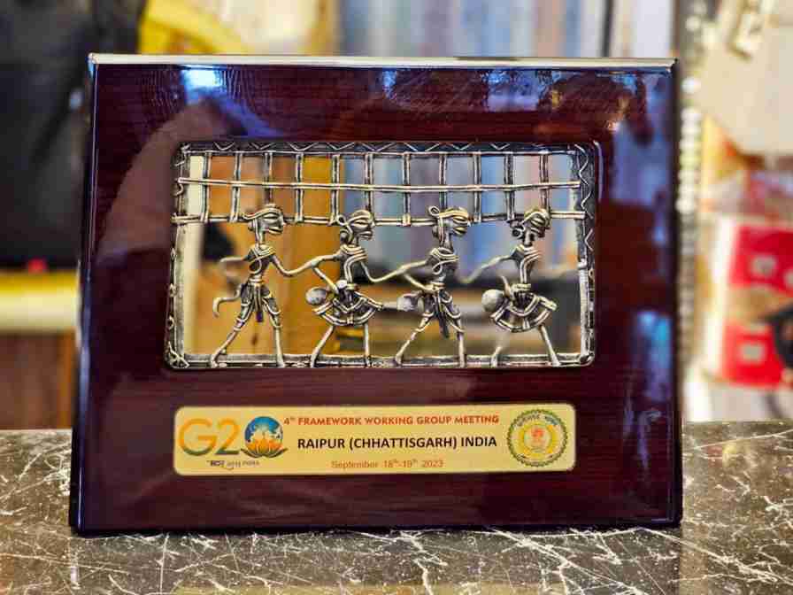 इसके साथ ही चिन्हारी के रूप उन्हें बस्तर आर्ट का उपहार भी दिया जाएगा। यहां ढोकरा कला से बनाई गई एक प्रतिमा फ्रेम में आबद्ध कर उन्हें प्रदान की जाएगी। इस कला का थीम चार आदिवासी युवतियों को लेकर है। वे नृत्यरत हैं और एक दूसरे का हाथ थामे हुए है। इस प्रतिमा से बस्तर की सुंदरता और लोकजीवन की समृद्धि की झलक डेलीगेट्स को मिल सकेगी। साथ ही हजारों वर्ष पुराने छत्तीसगढ़ के लोककलाकारों की प्रतिभा से भी वे वाकिफ हो सकेंगे।