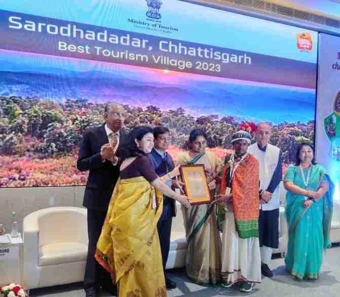 रायपुर। विश्व पर्यटन दिवस के अवसर पर केन्द्रीय पर्यटन मंत्रालय द्वारा इस वर्ष छत्तीसगढ़ के कबीरधाम जिले के सरोधा-दादर गाँव को राष्ट्रीय स्तर पर रजत श्रेणी में सर्वश्रेष्ठ पर्यटन ग्राम का पुरस्कार दिया गया है। सरोधा दादर को देश भर के 795 पर्यटन ग्रामों की प्रतियोगिता में विभिन्न मापदंडों के आधार पर सर्वश्रेष्ठ ग्राम के रूप में चुना गया। पर्यटन दिवस के अवसर पर नई दिल्ली भारत मंडपम में आयोजित समारोह में सरोधादादर गाँव के मंगल सिंह धुर्वे ने यह पुरस्कार ग्रहण किया। मुख्यमंत्री श्री भूपेश बघेल, पर्यटन मंत्री श्री ताम्रध्वज साहू, वन एवं जलवायु परिवर्तन मंत्री श्री मोहम्मद अकबर ने भारत के पर्यटन मानचित्र पर कबीरधाम जिले के ग्राम सरोदा दादर को राष्ट्रीय स्तर पर रजत श्रेणी में सर्वश्रेष्ठ पर्यटन ग्राम का पुरस्कार मिलने पर बधाई एवं शुभकामनाएं दी है।