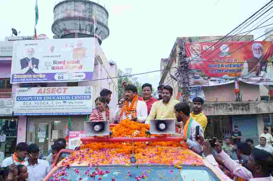 भिलाई नगर। भाजपा सांसद और फिल्म स्टार मनोज तिवारी आज भाजपा प्रत्याशी प्रेमप्रकाश पाण्डेय के पक्ष में प्रचार करने खुर्सीपार पहुंचे। इस दौरान रोड शो के माध्यम से उन्होंने खुर्सीपार क्षेत्र के विभिन्न वार्डों का दौरा करते हुए जनता से भिलाई में विकास का कमल खिलाने और प्रेमप्रकाश पाण्डेय को भारी मतों से विजयी बनाने की अपील की। उन्होंने कहा कि भिलाई में अगर अपराध को खत्म करना है तो प्रेमप्रकाश पाण्डेय को जिताकर लाना जरूरी है। उन्होंने कहा कि छत्तीसगढ़ को स्व. अटल जी ने छत्तीसगढ़ को बनाया है पूर्व में भाजपा सरकार ने इसका विकास किया लेकिन पिछले पांच सालों में कांग्रेस सरकार ने छत्तीसगढ़ की दुर्दशा कर दी। लेकिन अब मोदी जी ने गारंटी दी है और अब भाजपा ही फिर से राज्य को संवारेगी।