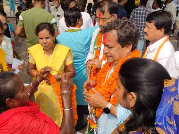 भिलाई। वैशाली नगर विधानसभा के कांग्रेस प्रत्याशी मुकेश चंद्राकर आज के अपने पहले दौर में वार्ड क्रमांक 5 कोसा नगर पहुंचे जहां राधा कृष्ण मंदिर में उन्होंने पूजा करके अपने वार्ड डोरी का प्रारंभ किया। उसके बाद यादव मोहल्ला मराठी,मोहल्ला,उड़िया मोहल्ला दीक्षित कॉलोनी सहित पूरे वार्ड का दौरा किया , इस बीच कार्यकर्ताओं एवं महिलाओं द्वारा उनका पूरे ज़ोर शोर से स्वागत किया गया एवं उन्हें उनके आगामी चुनाव के लिए पूर्ण समर्थन देने की बात कही। जैसे-जैसे चुनाव की तारीख नजदीक आती जा रही है मुकेश चंद्राकर के लिए जल समर्थक और भी व्यापक होता नजर आ रहा है। आज उनके वार्ड दौर में उनके साथ पार्षद संदीप निरंकारी , हरी राय एवं अन्य साथीउपस्थित थे|