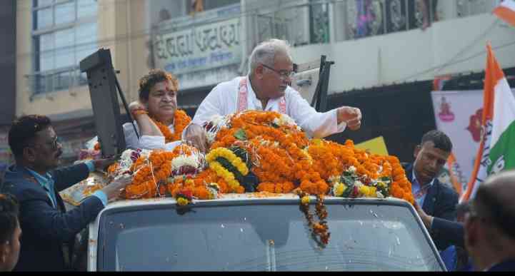 कांग्रेस प्रत्याशी मुकेश चन्द्राकर के पक्ष में मुख्यमंत्री भूपेश बघेल ने जलेबी चौक से चुनावी रोड शो किया