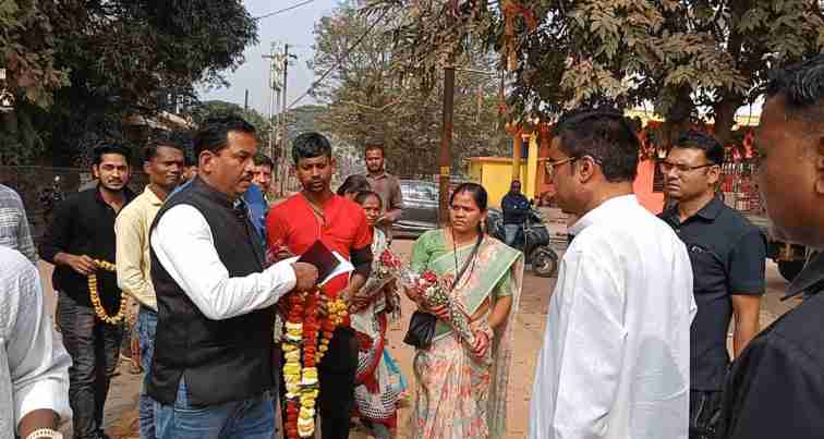 ढोल नगाड़ों के साथ पहुंचे कर्मी जताया रिकेश सेन का आभार