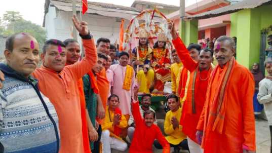 जांजगीर। अयोध्या राम मंदिर जन्मभूमि से आए पूजित अक्षत कलश यात्रा सनातन धर्म रक्षा सेवा समिति के द्वारा कीर्तन मण्डली के साथ ग्राम पूटपुरा में 351 अक्षत कलश के साथ भगवान राम लक्ष्मण की झांकी निकाली गई यात्रा उप सरपंच अरुण राठौर के घर से मुख्य मार्ग से होते हुए पूजित अक्षत कलश को बंगला गुड्डी स्थित श्री सिद्ध पीलेश्वर बाबा मंदिर में स्थापित की गई जहां उनकी नित्य पूजा और आरती होगी यात्रा का हर घर में भक्तों द्वारा आरती उतार पूजा कर अर्चना किया गया यात्रा में भक्तों की जबरदस्त भीड़ उमड़ी भक्तों ने यात्रा में जय जय श्री राम के नारे लगाकर पूरा क्षेत्र को गुंजायमान कर दिया यात्रा में प्रमुख रूप से जवाहर तिवारी सरपंच दशरथ लाल डहारे साकेत तिवारी सरपंच अरुण राठौर संजय तिवारी दीपक तिवारी राधेश्याम शास्त्री गंगाराम ढीमर प्रेमचंद तिवारी अजय राठौर मोहर साय यादव भरत राठौर खीख राम यादव सोनू तिवारी चुन्नीलाल राठौर गुरु दत्त गोस्वामी नंदकिशोर राठौर अमर यादव प्रमोद राठौर टीकाराम राठौरअजय तिवारी रामकुमार दिनकर राजकुमार दिनकर विजय राठौर राहुल यादव अईत राम राजकुमार राठौर भुवनेश्वर राठौर देवा यादव कृष्णा यादव अशोक राठौर राजू बड़े अंशु गोस्वामी कृशानू तिवारी रामकिशोर यादव सुखराम बरेठ बसंत यादव लखन बरेठ राकेश यादव किशोर राठौर सहित गांव की माता एवं बहनों और बड़ी संख्या में नागरिक उपस्थित थे।