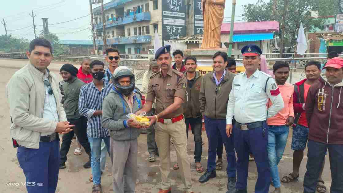 कवर्धा। ट्रैफिक पुलिस ने मिनीमाता चौक कवर्धा में बाइक चालको को हेलमेट की विशेषताओं के बारे में अवगत कराया है। इस दौरान सब इंस्पेक्टर अजयकांत तिवारी ने बताया कि सड़क पर चलते समय हेलमेट का उपयोग करना चाहिए। सभी वाहन चालकों को ट्रैफिक पुलिस के नियमो पालन कर वाहन चलना चाहिए। जिससे सड़क दुर्घटनाये नही होगी। साथ ही साथ सड़क पार करते समय सिग्नल को देख कर ही पार करे। इसके अलावा दो पहिया वाहन चालको को हेलमेट के महत्व के बारे में भी बताया गया।