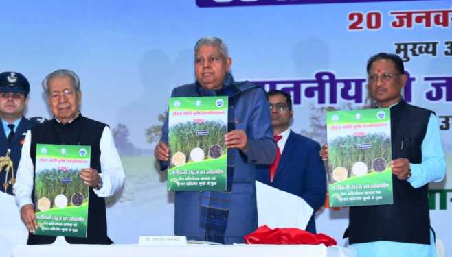 रायपुर, 20 जनवरी 2024| उप राष्ट्रपति श्री जगदीप धनखड़ ने आज इंदिरा गांधी कृषि विश्वविद्यालय के 38वें स्थापना दिवस को सम्बोधित करते हुए कहा कि हमारे किसान खुशहाल होंगे तो देश खुशहाल होगा। किसानों के लिए खेती-किसानी आजीविका का साधन ही नहीं अपितु देश की इकॉनामी को गति प्रदान करने, पर्यावरण संरक्षण और सामाजिक विकास का आधार है। अन्नदाताओं का अभिनंदन करते हुए करते हुए श्री धनखड़ ने कहा कि कृषि के क्षेत्र में आधुनिक तकनीकी को अपनाकर, किसानों को सहयोग प्रदान कर, आने वाली पीढ़ियों को खाद्य सुरक्षा सुनिश्चित करने और 2047 तक विकसित भारत बनाने के लक्ष्य को हासिल किया जा सकता है।