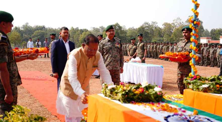 रायपुर। मुख्यमंत्री विष्णुदेव साय ने आज बस्तर जिले के करनपुर स्थित 201 कोबरा सीआरपीएफ कैंप पहुंचकर वहां टेकलगुड़ेम गांव में (थाना जगरगुण्डा जिला सुकमा) नक्सल मुठभेड़ में शहीद जवानों के पार्थिव शरीर पर पुष्पचक्र अर्पित कर उन्हें श्रद्धांजलि दी। उन्होंने 201 कोबरा बटालियन के जवानों से मुलाकात कर उनके साहस और जज्बों की सराहना करते हुए जवानों का मनोबल बढ़ाया।