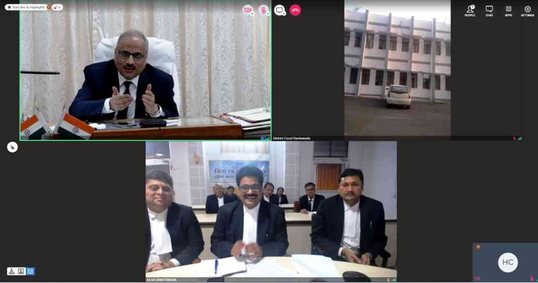रायपुर। छत्तीसगढ़ उच्च न्यायालय के मुख्य न्यायाधीश श्री रमेश सिन्हा द्वारा आज जिला एवं सत्र न्यायालय, दक्षिण बस्तर दंतेवाड़ा का वर्चुअल निरीक्षण किया गया। निरीक्षण के दौरान मुख्य न्यायाधीश श्री रमेश सिन्हा ने न्यायालय की अधोसंरचना का अवलोकन किया तथा न्यायालय को व्यवस्थित रखने तथा अधिवक्ताओं एवं पक्षकारों, सभी के लिए आवश्यक सुविधा उपलब्ध कराने हेतु जिला न्यायाधीश को निर्देशित किया।