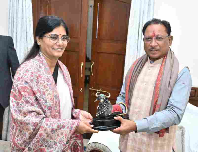 रायपुर। मुख्यमंत्री विष्णु देव साय से आज यहां राज्य अतिथि गृह पहुना में केंद्रीय वाणिज्य एवं उद्योग राज्य मंत्री श्रीमती अनुप्रिया पटेल ने सौजन्य मुलाकात की। इस मौके पर मुख्यमंत्री श्री साय ने केंद्रीय मंत्री श्रीमती पटेल को स्मृति चिन्ह भेंट किया।