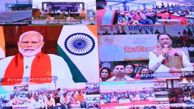 प्रधानमंत्री नरेन्द्र मोदी विकसित भारत विकसित छत्तीसगढ़ संकल्प यात्रा कार्यक्रम में वीडियो कॉन्फ्रेंसिंग के द्वारा हुए शामिल