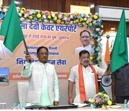 रायपुर। मुख्यमंत्री श्री विष्णु देव साय ने आज अपने निवास कार्यालय रायपुर से वर्चुअली हरी झंडी दिखाकर बिलासा देवी केंवट विमानतल, बिलासपुर से बिलासपुर-दिल्ली और बिलासपुर-कोलकाता सीधी हवाई सेवा का शुभारंभ किया। उप मुख्यमंत्री श्री अरुण साव सहित अनेक जनप्रतिनिधि बिलासा देवी केंवट विमानतल पर तथा मुख्यमंत्री निवास पर लोकसभा सांसद श्री सुनील सोनी उपस्थित थे।