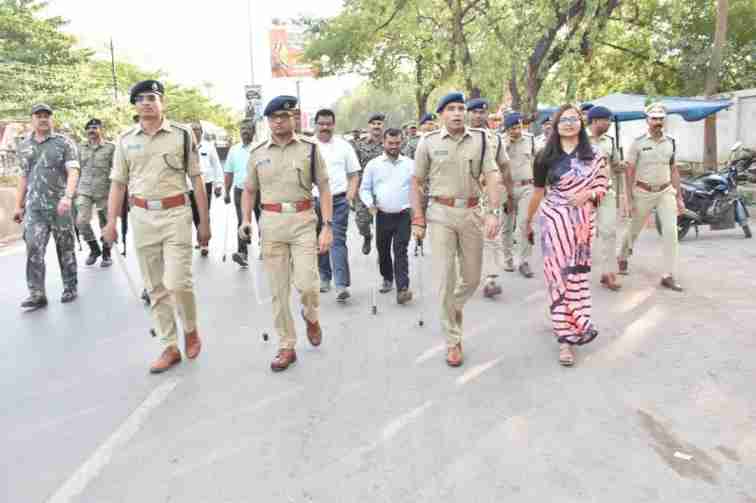 भिलाई में सुखनंदन राठौर, अतिरिक्त पुलिस अधीक्षक, शहर व्दारा जिला पुलिस बल एवं पैरा मिलेदी फोर्स को ब्रीफ कर आवश्यक निर्देश दिये गये। फ्लैग मार्च दुर्ग में अभिषेक झा, अतिरिक्त पुलिस अधीक्षक, शहर, चिराग जैन, परि. भापुसे, नगर पुलिस अधीक्षक, दुर्ग, अक्षय प्रमोद सावद्रा, परि. भापुसे, अरविन्द एक्का, अति. जिला दण्डाधिकारी, दुर्ग, सतीश ठाकुर, उप पुलिस अधीक्षक, यातायात, चन्द्र प्रकाश तिवारी, उप पुलिस अधीक्षक, लाईन, आकांक्षा पाण्डेय, परि. उप पुलिस अधीक्षक एवं भिलाई में सत्य प्रकाश तिवारी, नगर पुलिस अधीक्षक, भिलाई नगर, हरिश पाटिल नगर पुलिस अधीक्षक, छावनी, लवकेश ध्रुव के साथ ही रक्षित निरीक्षक, दुर्ग, समस्त थाना प्रभारी उपस्थित थे।