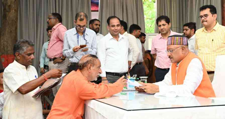 रायपुर। मुख्यमंत्री श्री विष्णु देव साय का राज्य की जनता को स्वच्छ, पारदर्शी, संवेदनशील एवं प्रभावी प्रशासन मुहैया कराने का संकल्प एक-एक कर अमल में दिखाई देने लगा है। सत्ता की बागड़ोर सम्भालने के बाद से ही शासन-प्रशासन को जनता के करीब लाने की मुख्यमंत्री श्री विष्णु देव साय की इच्छा आज जनदर्शन में पूरी होती दिखी। मुख्यमंत्री श्री विष्णु देव साय ने राज्य में जनसमस्याओं की सुनवाई के लिए नये सिरे से जनदर्शन कार्यक्रम की शुरूआत की है। जनदर्शन का यह कार्यक्रम मुख्यमंत्री निवास कार्यालय में 27 जून गुरूवार को आयोजित हुआ। मुख्यमंत्री श्री विष्णु देव साय ने जनदर्शन कार्यक्रम में प्रदेश के दूर-दराज से आए हजारों लोगों से एक-एक कर मुलाकात की। बड़े ही अपनत्व भाव से उन्होंने आम जनमानस की समस्याएं और उनकी अपेक्षाएं सुनी और विभागीय अधिकारियों को प्राप्त शिकायतों एवं आवेदनों को तत्परता से निपटाने के निर्देश दिए।