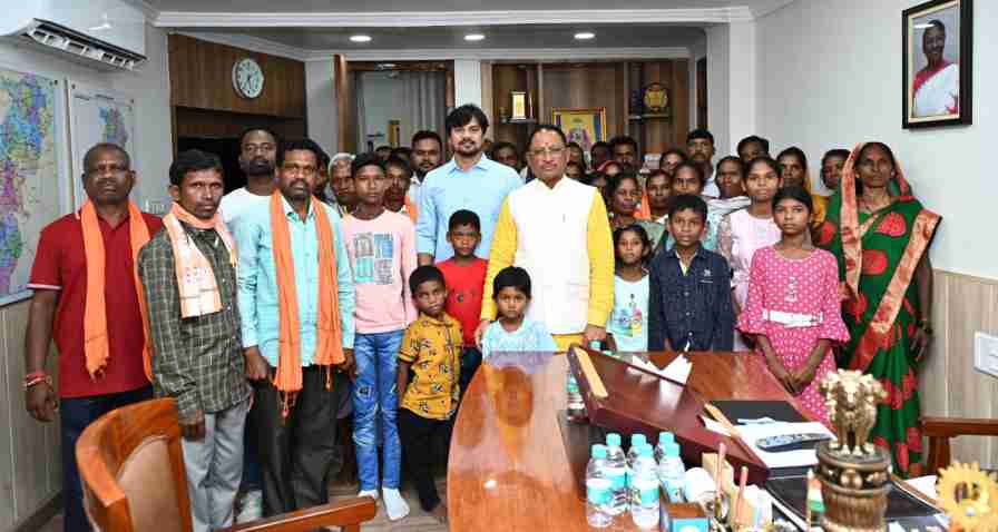 रायपुर। जशपुर जिले के ग्राम पंचायत तामासिंघा, बंदरचुआं और आश्रित ग्रामों के पंचों तथा ग्रामीणों के वार्षिक भ्रमण में अब एक नई जगह जुड़ गई है। मुख्यमंत्री श्री विष्णु देव साय के गृह ग्राम बगिया के आसपास के गांवों से वार्षिक भ्रमण पर राजधानी रायपुर पहुंचे ग्रामीणों ने गांव लौटने से पूर्व यात्रा के अंतिम पड़ाव में मुख्यमंत्री निवास पहुंचकर उनसे मुलाकात की। ग्रामीणों ने मुख्यमंत्री से अपनी यात्रा के बारे में रोचक बातें साझा की। मुख्यमंत्री ने सभी का हालचाल जाना और बारिश, खेती-किसानी सहित गांव से जुड़ी ढेर सारी बातें की। इस मौके पर ग्राम तामासिंघा के सरपंच श्री संकेत साय पैंकरा भी मौजूद थे।