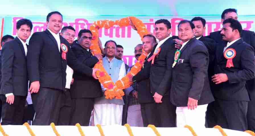 रायपुर। मुख्यमंत्री विष्णु देव साय आज बिलासपुर जिला अधिवक्ता संघ के शपथ ग्रहण समारोह में शामिल हुए। उन्होंने संघ के नव निर्वाचित पदाधिकारियों को शपथ दिलाई। मुख्यमंत्री ने संघ की मांग पर जिला न्यायालय परिसर में नये सामुदायिक भवन बनाने की घोषणा की। कार्यक्रम की अध्यक्षता जिला अधिवक्ता संघ के अध्यक्ष श्री दाऊराम चंद्रवंशी ने की। अति विशिष्ट अतिथि के रूप में उप मुख्यमंत्री श्री अरूण साव मौजूद थे। इस अवसर पर विशेष अतिथि के रूप में महाधिवक्ता श्री प्रफुल्ल एन भारत, विधायक श्री अमर अग्रवाल, श्री धरमलाल कौशिक, श्री दिलीप लहरिया, श्री अटल श्रीवास्तव, श्री सुशांत शुक्ला, महापौर श्री रामशरण यादव, प्रधान जिला एवं सत्र न्यायाधीश श्रीमती नीता यादव, संरक्षक अधिवक्ता संघ श्री एसके सिन्हा एवं प्रतिनिधि भारतीय विधिज्ञ परिषद श्री शैलेन्द्र दुबे उपस्थित थे।
