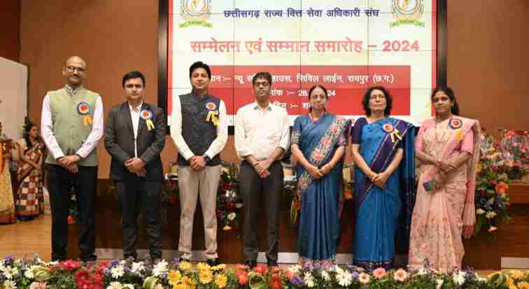 रायपुर। छत्तीसगढ़ राज्य वित्त सेवा अधिकारी संघ द्वारा कन्वेंशन हॉल, न्यू सर्किट हाऊस सिविल लाईन्स रायपुर में सम्मेलन व सम्मान समारोह का आयोजन किया गया। कार्यक्रम की मुख्य अतिथि वित्त सचिव श्रीमती शारदा वर्मा एवं अध्यक्षता संचालक कोष, लेखा एवं पेंशन श्री रितेश कुमार अग्रवाल ने की।