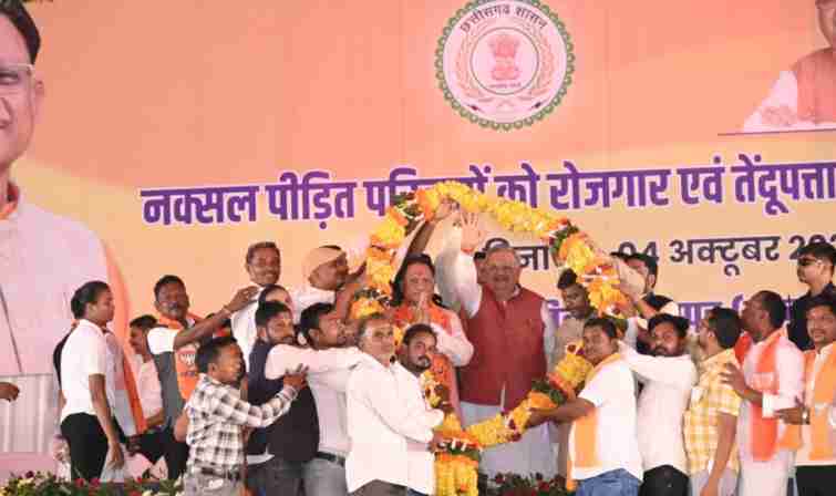 मुख्यमंत्री श्री विष्णु देव साय आज बीजापुर जिला मुख्यालय के मिनी स्टेडियम में आयोजित नक्सल पुनर्वास नीति के अंतर्गत नक्सल पीड़ित परिवार के आश्रितों को शासकीय नियुक्ति आदेश और तेंदूपत्ता बोनस वितरण कार्यक्रम में शामिल हुए। इस मौके पर उन्होंने 263 करोड़ 66 लाख से अधिक की लागत से 209 के विकास कार्यों का लोकार्पण एवं भूमिपूजन किया। इनमें 228 करोड़ 53 लाख के 145 विकास कार्यों का भूमि पूजन और 35 करोड़ 13 लाख के 64 विकास कार्य का लोकार्पण शामिल है।