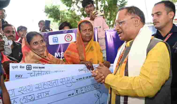 जशपुर। मुख्यमंत्री विष्णु देव साय ने आज मुख्यमंत्री कैम्प कार्यालय बगिया में फरसाबहार विकास खंड के जोरण्डाझरिया की 4 स्व सहायता समूह की महिलाओं को 6–6 लाख के मान से 40 महिलाओं सदस्यों को रोजगार करने के लिए 24 लाख का चेक प्रदान किया।