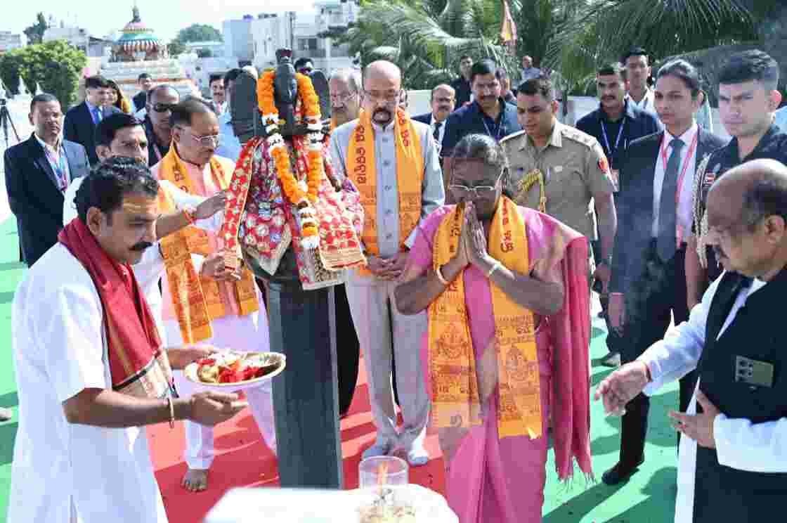 रायपुर। राष्ट्रपति श्रीमती द्रौपदी मुर्मु छत्तीसगढ़ प्रवास के दूसरे दिन आज राजधानी रायपुर के गायत्री नगर स्थित महाप्रभु भगवान श्री जगन्नाथ मंदिर में पूजा-अर्चना कर देशवासियों के सुख-समृद्धि और निरंतर प्रगति के लिए आशीर्वाद मांगा। राष्ट्रपति श्रीमती मुर्मु इस दौरान जगन्नाथ सेवा समिति के सदस्यों से मिलकर उनका हाल-चाल जाना। उन्होंने इस मौके पर मंदिर पहुंचे प्रदेश के जनप्रतिनिधियों एवं वरिष्टजनों से भेंट की। इस अवसर पर राज्यपाल श्री रामेन डेका, मुख्यमंत्री श्री विष्णुदेव साय, केंद्रीय राज्यमंत्री श्री तोखन साहू, सांसद श्री बृजमोहन अग्रवाल, विधायक श्री पुरंदर मिश्रा सहित मंदिर समिति के पदाधिकारी उपस्थित थे।