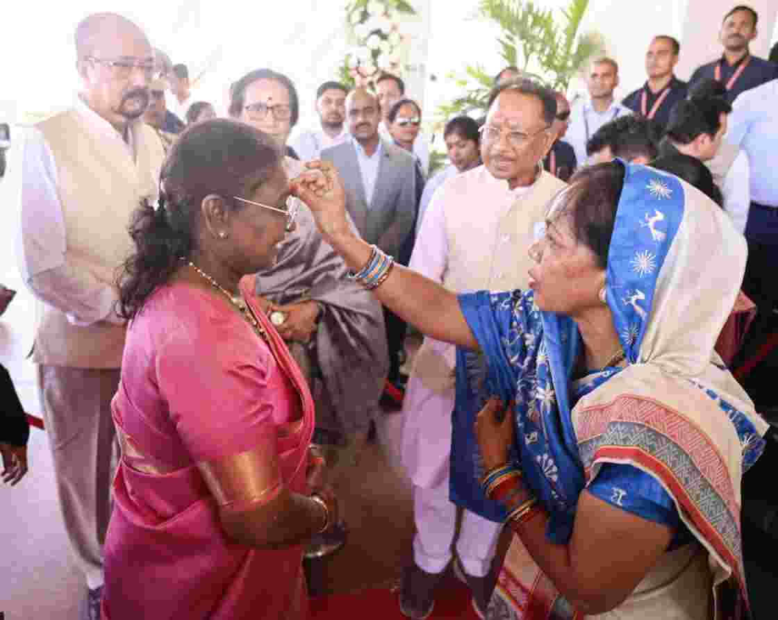 रायपुर। राष्ट्रपति श्रीमती द्रौपदी मुर्मु आज नवा रायपुर सेक्टर 24 स्थित नवीन मुख्यमंत्री निवास पहुंची। उनके यहां पहुंचने पर राज्यपाल श्री रमेन डेका, मुख्यमंत्री श्री विष्णु देव साय, प्रथम महिला श्रीमती रानी डेका काकोटी, मुख्यमंत्री की धर्मपत्नी श्रीमती कौशल्या देवी साय सहित परिजनों ने परंपरागत रूप से उनका आत्मीय स्वागत किया।