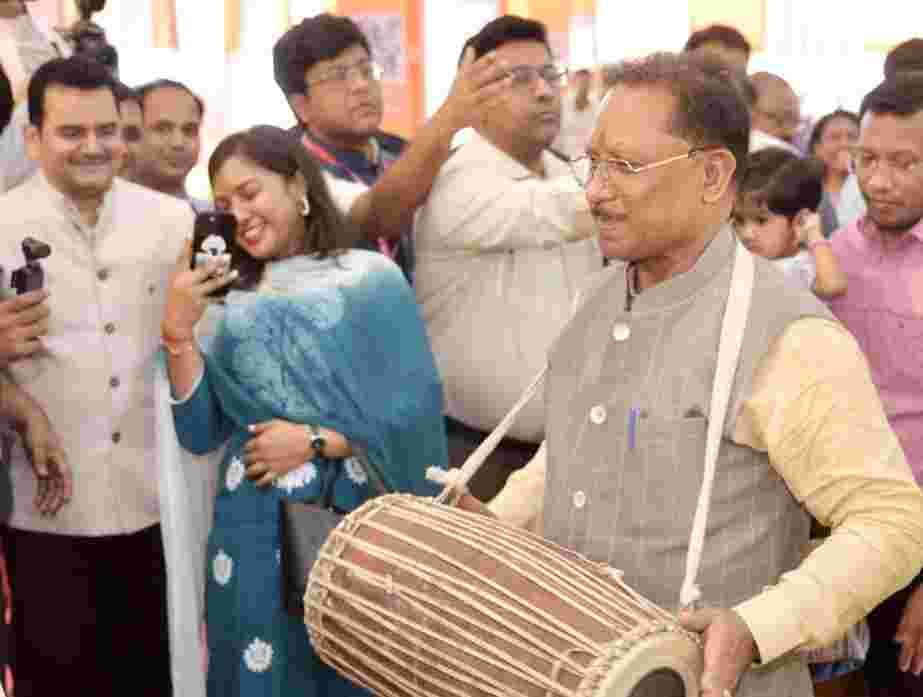 रायपुर। छत्तीसगढ की संस्कृति को संजोकर रखने और उनका प्रचार प्रसार करने के लिए छत्तीसगढ के वाद्ययंत्रों की प्रदर्शनी भी राज्योत्सव में लगाई हैl कलाकार श्री रिखी क्षत्रीय ने मुख्यमंत्री विष्णु देव साय को मांदर भेंट किया, मुख्यमंत्री ने वादकों के साथ मांदर बजाकर उनका उत्साह वर्धन किया l