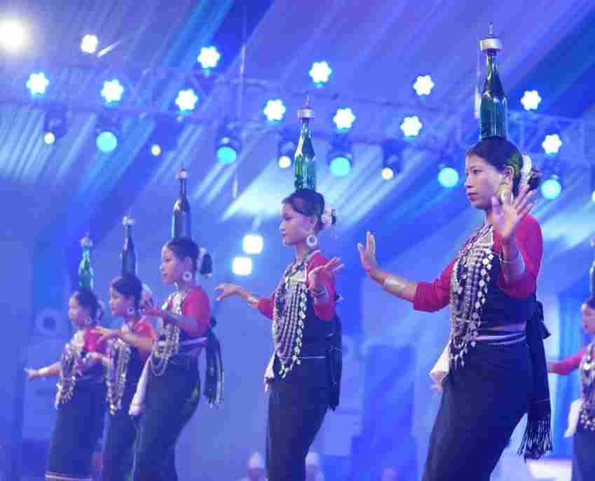 त्रिपुरा से आए ब्रू रियांग जनजाति समुदाय के नर्तक दल ने परंपरागत लोकनृत्य होजागिरी की प्रस्तुति से दर्शकों को मंत्रमुग्ध कर दिया। इस नृत्य में ब्रू रियांग जनजाति समुदाय की युवतियों ने सिर के ऊपर बोतल को संभालते हुए अद्भुत सामंजस्य के साथ प्रस्तुति दी। नृत्य के दौरान नर्तकों के कलात्मक प्रदर्शन को भी दर्शकों की खूब सराहना मिली।