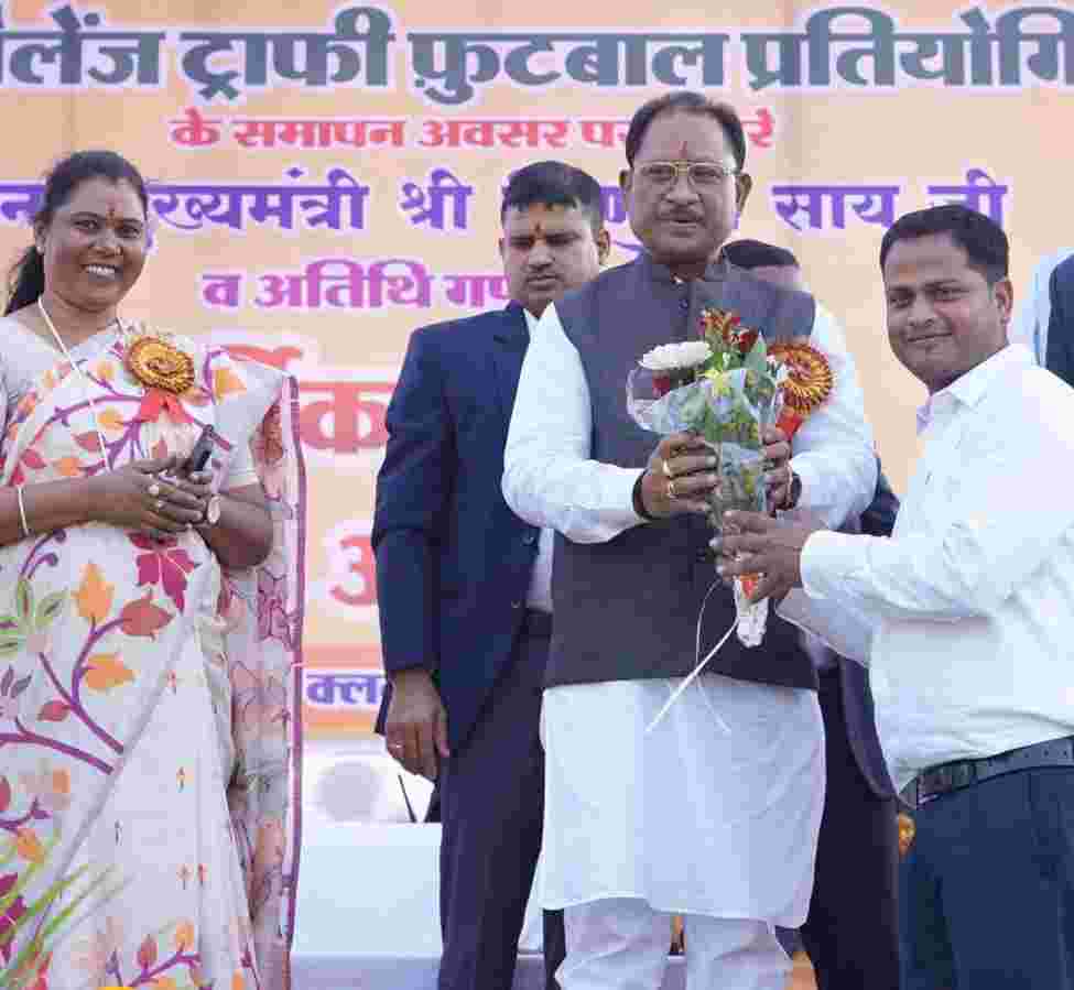 रायपुर। मुख्यमंत्री विष्णुदेव साय आज जशपुर जिले के पत्थलगांव तहसील के ग्राम बागबहार मिनी स्टेडियम में आयोजित 33 वें ओपन चैलेंज ट्रॉफी फुटबॉल प्रतियोगिता के समापन समारोह में शामिल हुए। मुख्यमंत्री श्री साय ने इस मौके पर प्राथमिक स्वास्थ्य केंद्र बागबहार के 10 बेड के अस्पताल को 30 बेड में उन्नयन करने की घोषणा भी की। उन्होंने बागबहार के शिव मंदिर के पास तालाब के सौंदर्यीकरण, विश्रामगृह निर्माण, बागबहार चौक- चौराहों में हाई मास्क लगाने, मिनी स्टेडियम में आवश्यक सुविधाओं का विकास तथा कोतबा में अपेक्स बैंक खोलने की घोषणा की।