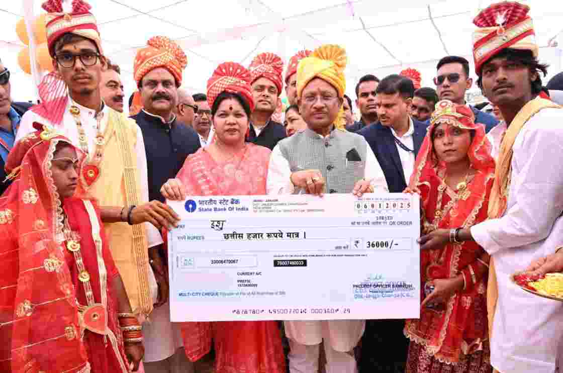 मुख्यमंत्री श्री साय ने जांजगीर के शासकीय हाई स्कूल मैदान में आयोजित कार्यक्रम में मुख्यमंत्री कन्या विवाह योजना के अंतर्गत आयोजित सामूहिक विवाह समारोह में नवविवाहित 57 जोड़ों को नए दाम्पत्य जीवन में प्रवेश के लिए शुभकामनाएं दी। उन्होंने इस अवसर पर 183.41 करोड़ रूपए की लागत के 285 विकास कार्यों का लोकार्पण एवं भूमिपूजन किया। इसमें 118.39 करोड़ की लागत के 112 कार्यों का भूमिपूजन एवं 65.02 करोड़ के 173 कार्यों का लोकार्पण शामिल हैं। कार्यक्रम में इन्डस सॉफ्ट कंपनी प्रोजेक्ट संचार अंतर्गत सिद्ध के आईटीआई के साथ निशुल्क टेलीकॉम प्रारंभ करने, आईसीआईसीआई मिशन डीजी सक्षम अंतर्गत 10 शासकीय स्कूलों में निशुल्क कंप्यूटर स्थापना और मेसन ट्रेनिंग हेतु नया ट्रेनिंग सेंटर स्थापित करने हेतु ओएमयू किया गया। कार्यक्रम में जिले के पर्यटन कैलेंडर, प्रोजेक्ट सक्षम, बिहान समूहों के उत्पाद के लिए ब्रांड नेम बहिनी का विमोचन किया गया।