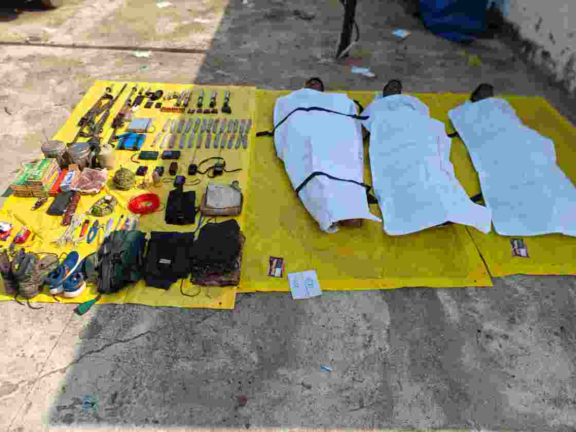 ⚫️ *मुठभेड़ समाप्ति उपरांत सभी टीमों द्वारा सर्च करने पर 03 पुरूष हार्डकोर माओवादियों का शव हथियार सामग्री सहित बरामद हुआ।*